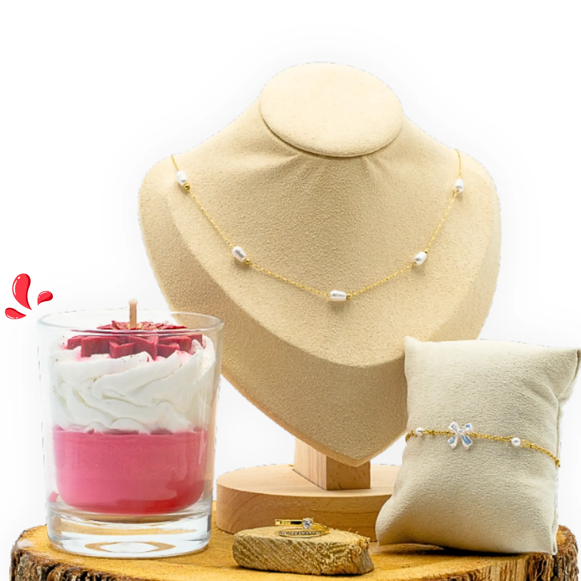 Le choix vous appartient ! Sélectionnez le type de bijou que vous souhaitez retrouver dans votre bougie dans les options ci-dessous. Il est même possible de le personnaliser sur mesure : à vous de jouer !