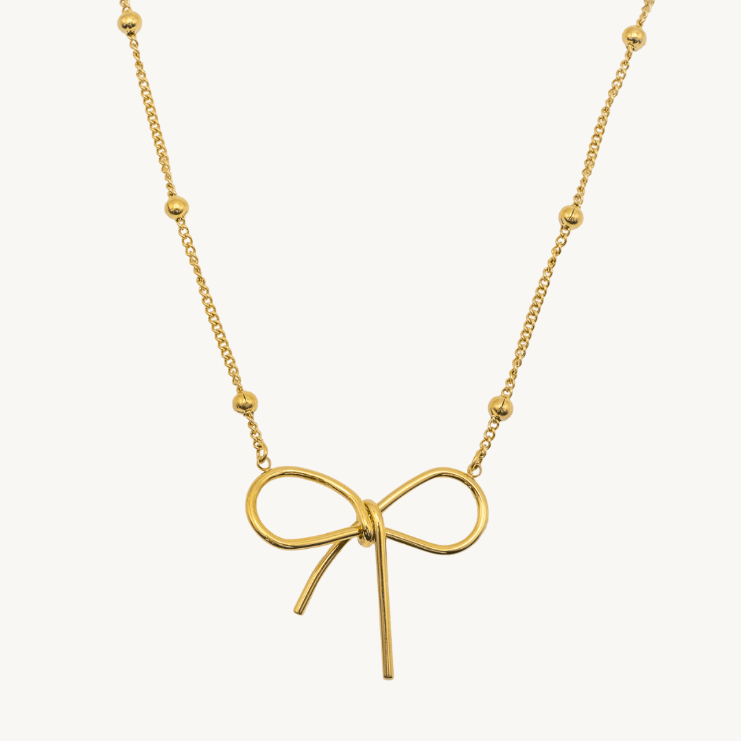 Le collier noeud doré en acier inoxydable incarne la douceur et l’élégance. Le noeud, suspendu délicatement à une chaîne fine, capte la lumière à chaque mouvement, ajoutant une touche discrète de brillance à votre décolleté. Simple, mais tellement raffiné, ce bijou devient rapidement un essentiel de votre collection.